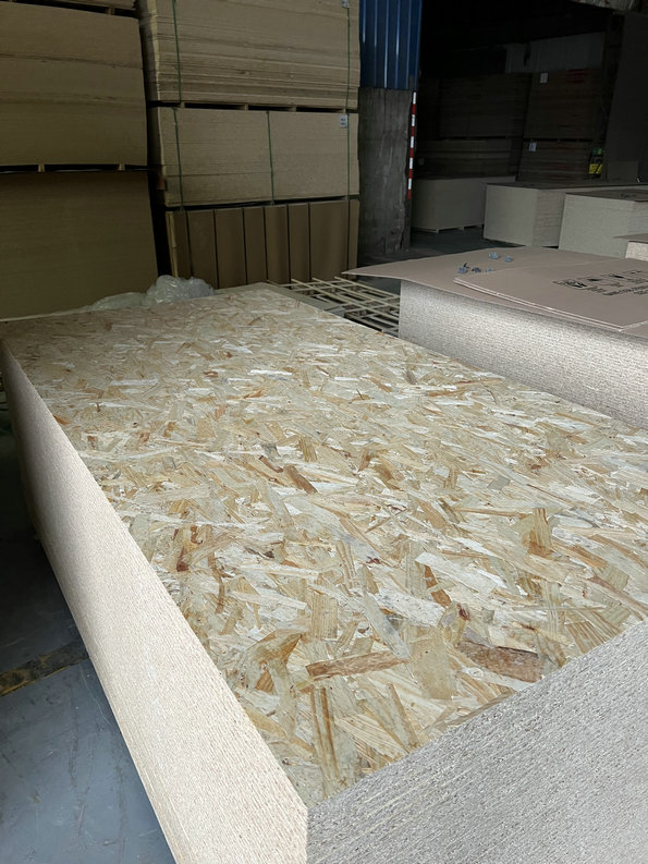 OSB定向刨花板是一種新型材料。是用原木,經(jīng)去皮,切片,順其木紋方向加工成長為40mm-120mm ,寬5mm-20mm,厚0.3mm-0.7mm的木片,經(jīng)高溫干燥,篩選后加入高性能膠和劑,按其經(jīng)緯方向分層定向排列,在高溫高壓下制成。OSB經(jīng)過現(xiàn)代高科技手段,采用實木 疊壓技術(shù)和“零甲醛”工藝對木材深加工后,不僅保留了木材的特性,同時賦予了OSB板較實木為優(yōu)異的特性,具體如下: 抗彎強度高,可用于輕鋼結(jié)構(gòu)建筑承重墻 抗潮性能強 線膨脹系數(shù)小,不易形變 尺寸穩(wěn)定 材質(zhì)均勻 握釘力,抗沖擊力強 可免熏蒸出口